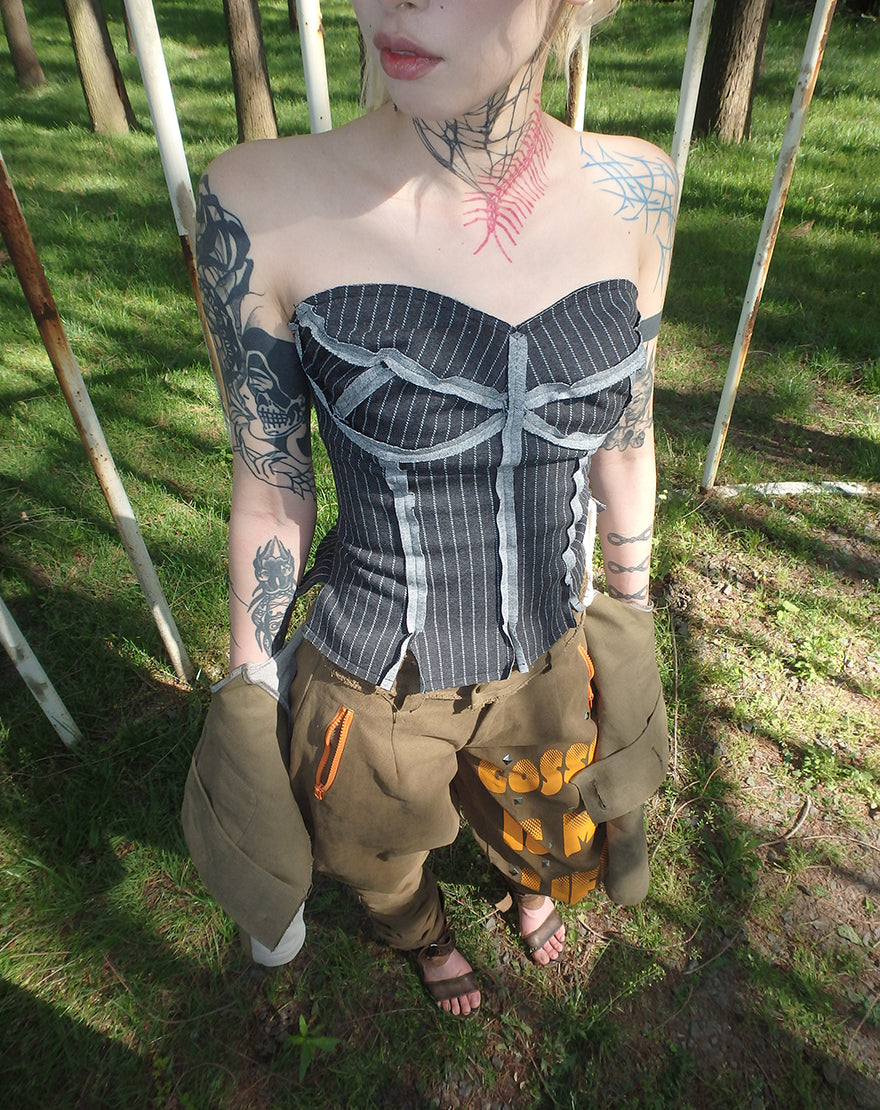 Versatile striped drawstring tube top corset